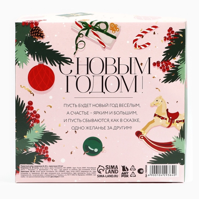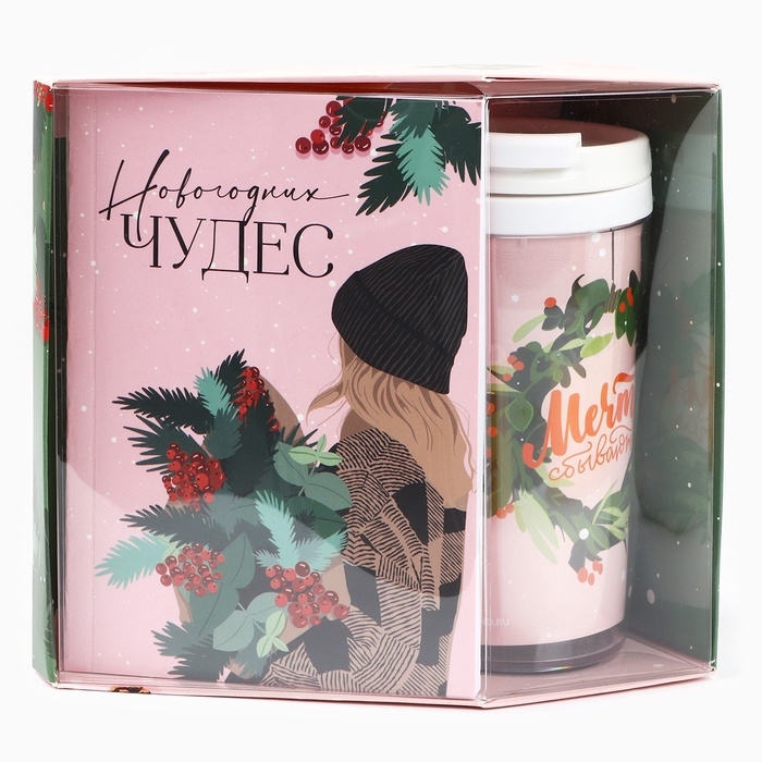 Новый год. Подарочный набор: ежедневник А6 80 листов и термостакан 250 мл «Новогодних чудес»