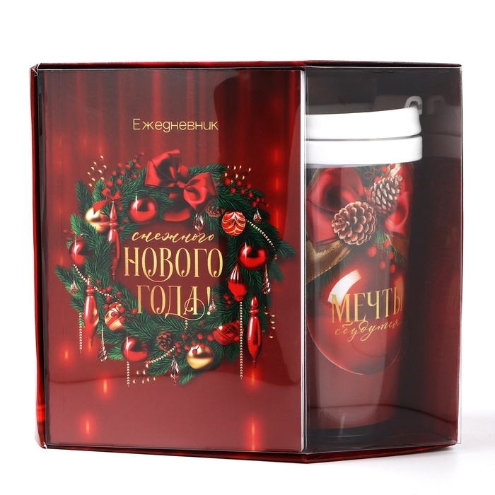 Новый год. Подарочный набор: ежедневник А6 80 листов и термостакан 250 мл «Счастья в Новом году»