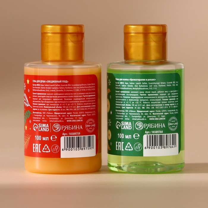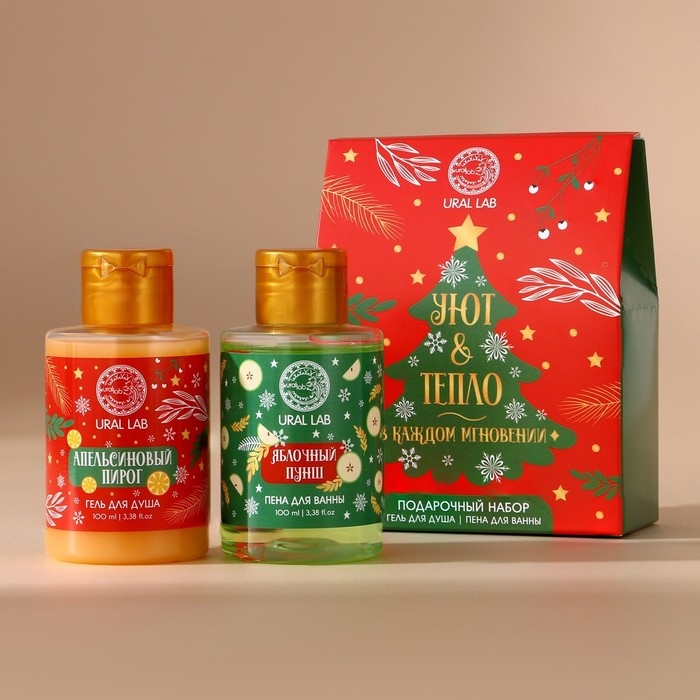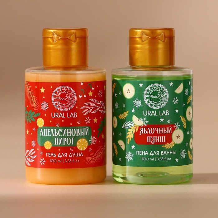Новый Год. Подарочный набор косметики, гель для душа и пена для ванны, 2 х 100 мл