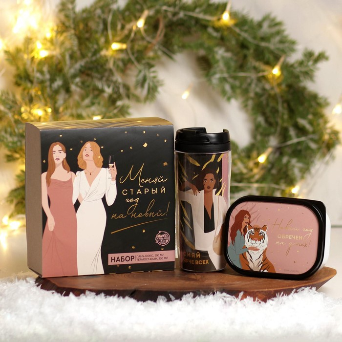 Новый год. Подарочный набор «Меняй старый год на новый»: термостакан 350 мл., ланч-бокс 500 мл