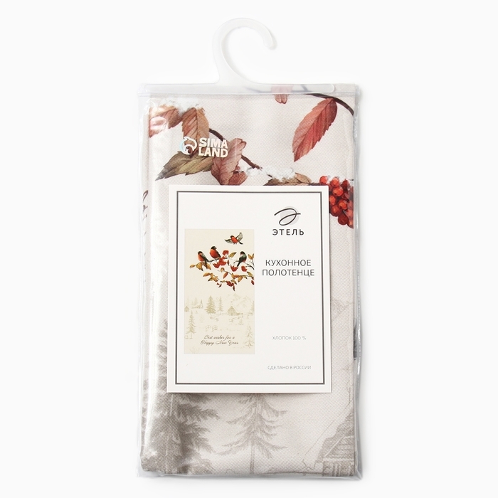 Новый год. Полотенце Этель "Снегири на ветках" 40х73 см, 100% хлопок, саржа 190 г/м2