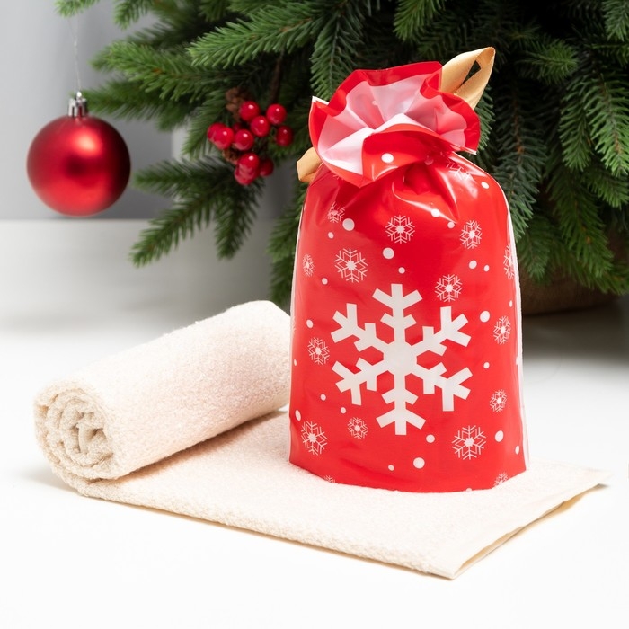 Новый год. Полотенце махровое Экономь и Я "Снежинка" 30*60 см, цв. молочный, 100% хл, 340 г/м2