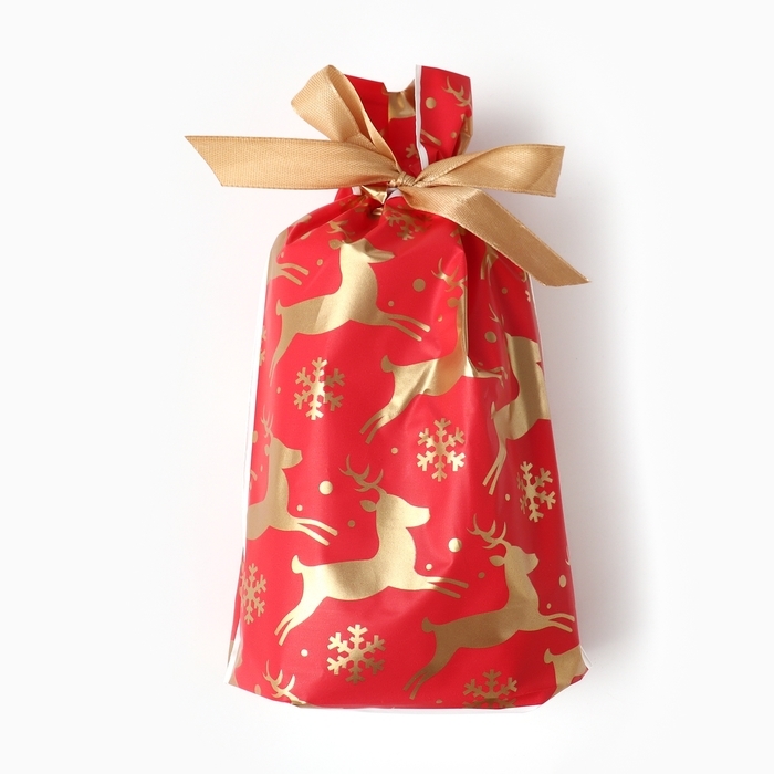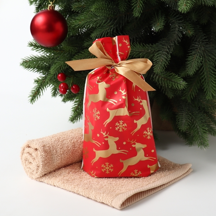 Новый год. Полотенце махровое Экономь и Я "Золотые олени" 30*60 см, цв. бежевый, 100% хл, 340 г/м2