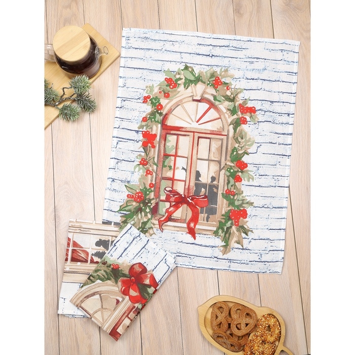 Новый год. Полотенце Новогодний вальс 12с35 1253-1 45х60см, рогожка 160г/м, хл100%
