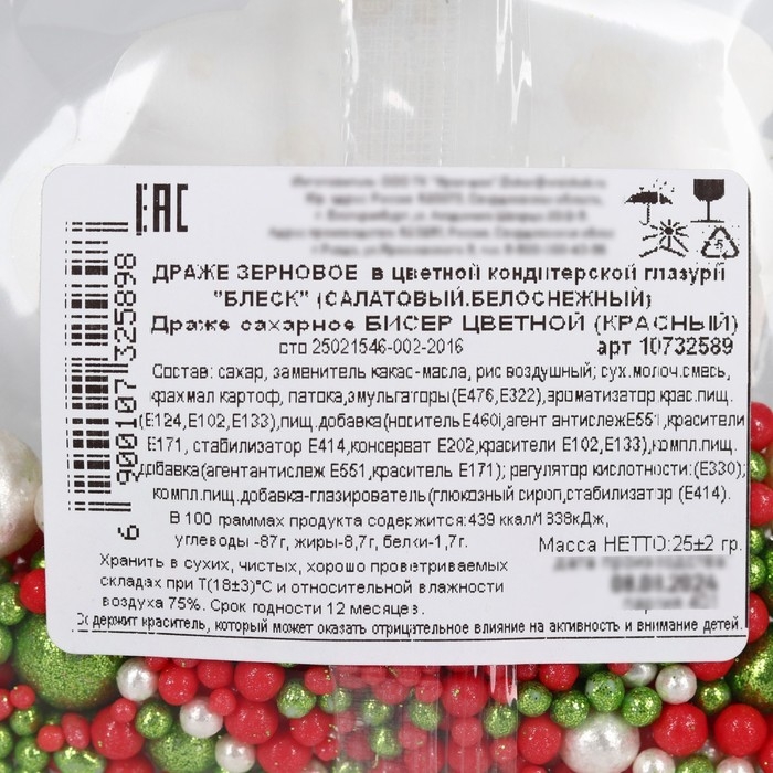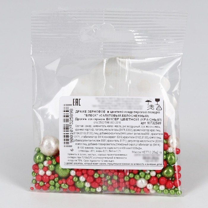 Новый год! Посыпка кондитерская мягкая с блеском: салатовая, красная, белоснежная, 25 г