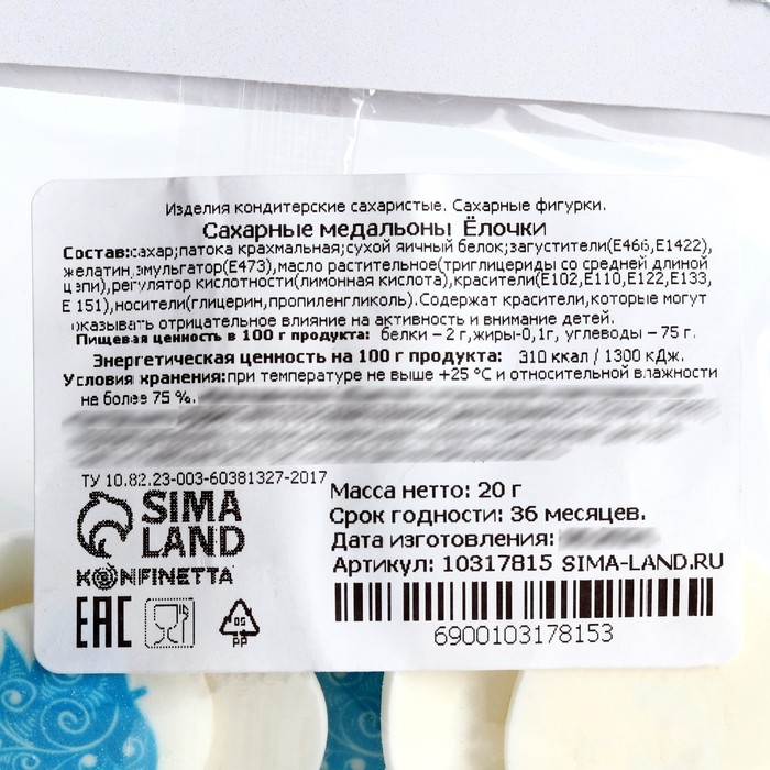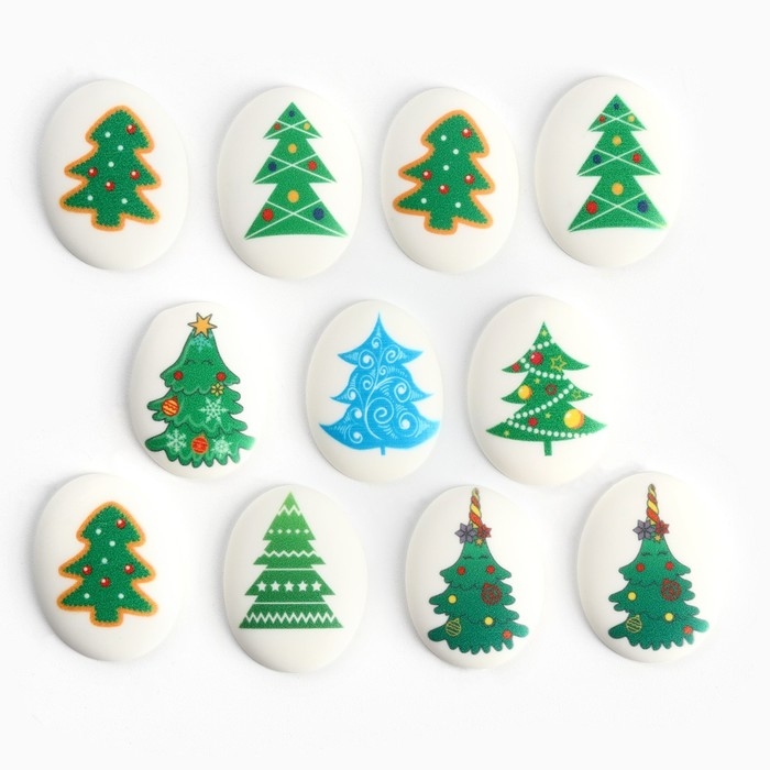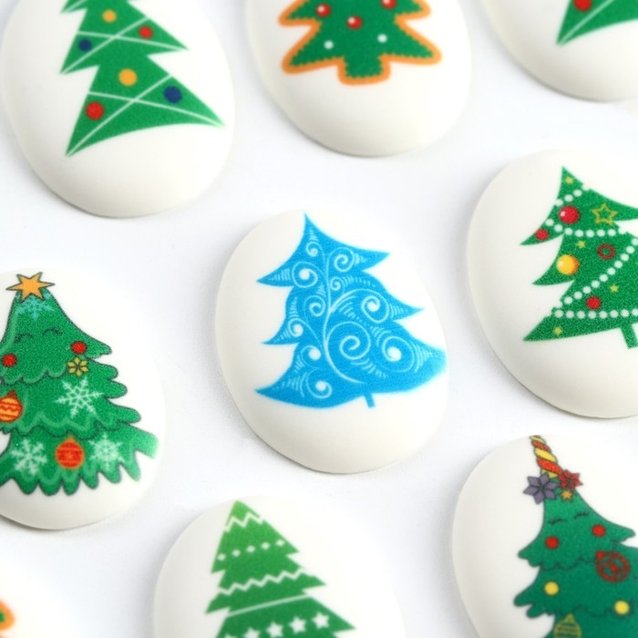 Новый год! Посыпка медальоны сахарная с картинкой микс: «Ёлочки», для декора капкейков, торта, напитков, 20 гр
