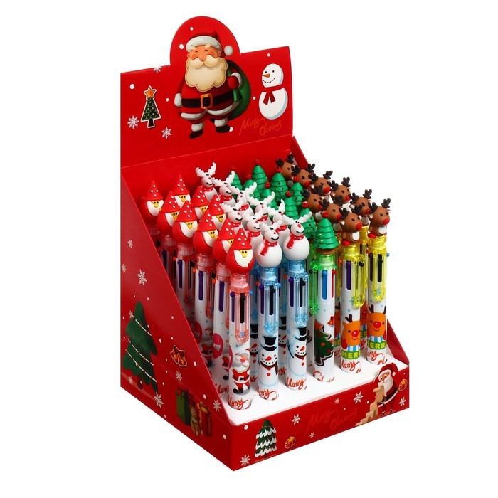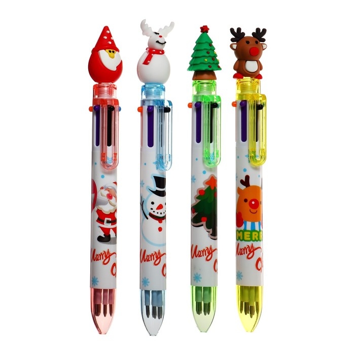 Новый год. Ручка шариковая, автоматическая "Новый год", 6-ти цветная, МИКС