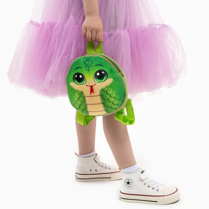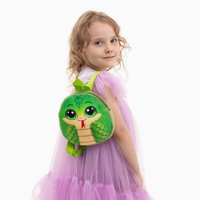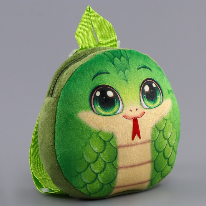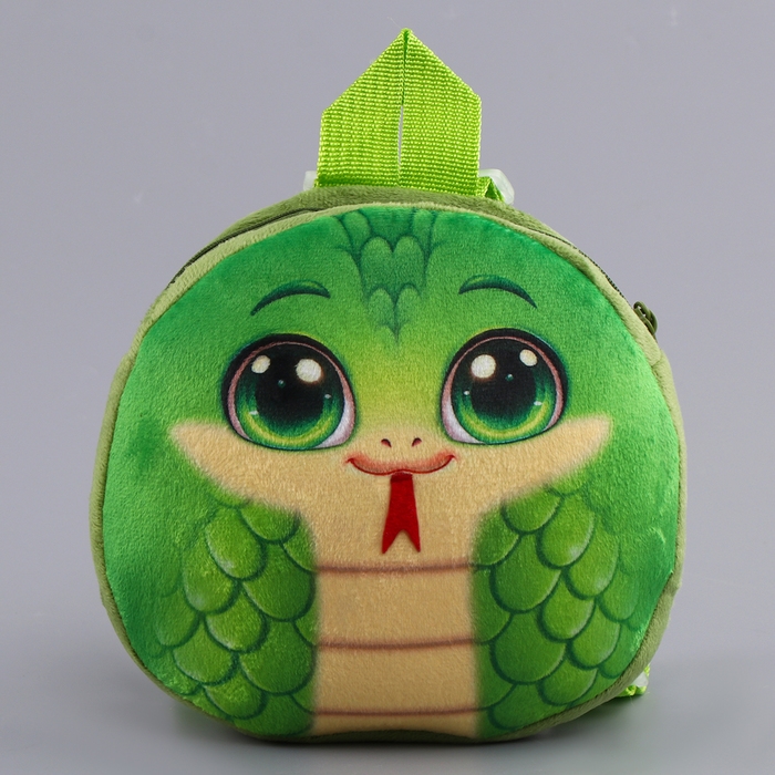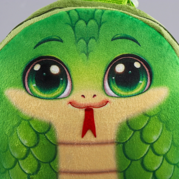 Новый год! Рюкзак детский новогодний «Весёлая змейка», плюшевый, цвет зелёный