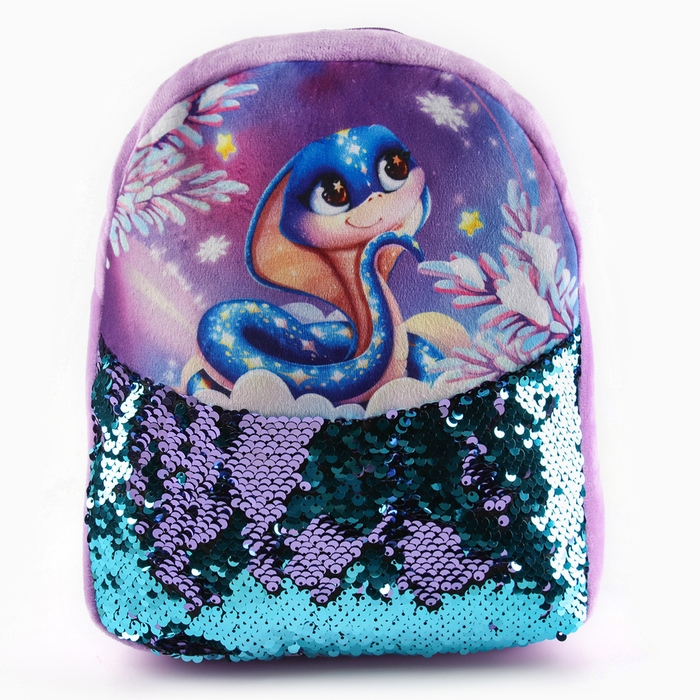 Новый год! Рюкзак детский новогодний «Змейка» с пайетками, 23х28 см, цвет фиолетовый