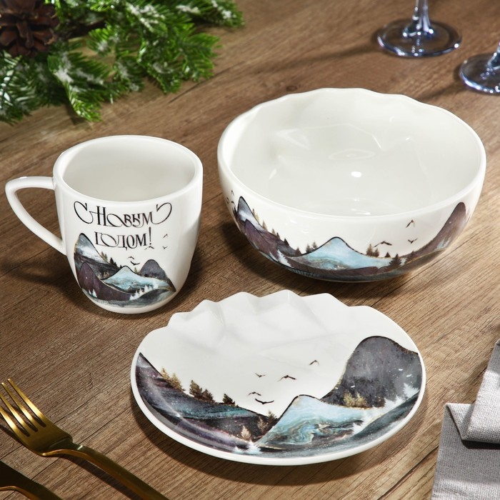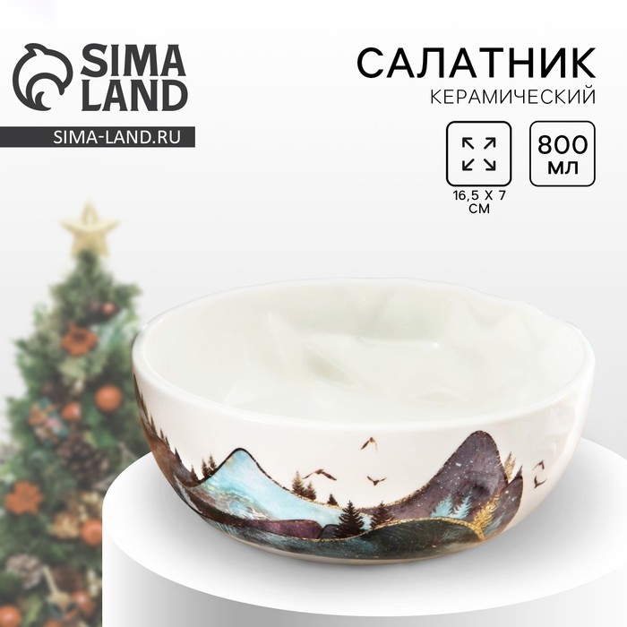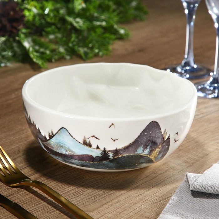 Новый год. Салатник керамический «Горы», 16.5 х 7 см, 800 мл, цвет белый