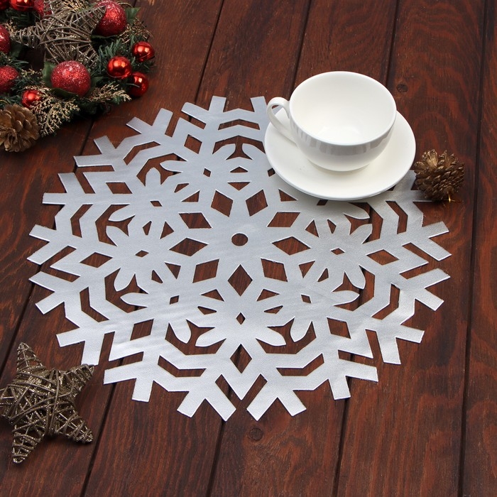 Новый год. Салфетка новогодняя сервировочная Доляна Снежинка, цвет серебро, d 38 см