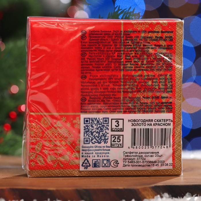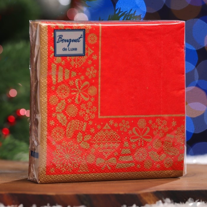 Новый год. Салфетки бумажные Art Bouquet "Новогодняя скатерть Золото на красном"3 слоя, 24x24,25 листов