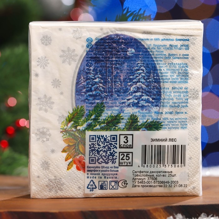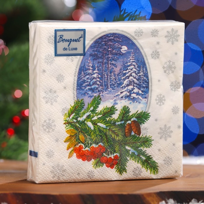 Новый год. Салфетки бумажные Art Bouquet "Зимний лес", 3 слоя, 24x24, 25 листов