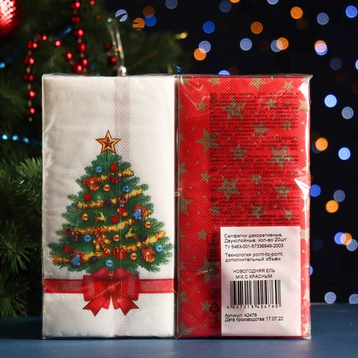 Новый год. Салфетки бумажные "Bouquet" Новогодняя ель Mix c красным, 2 слоя, 20 листов