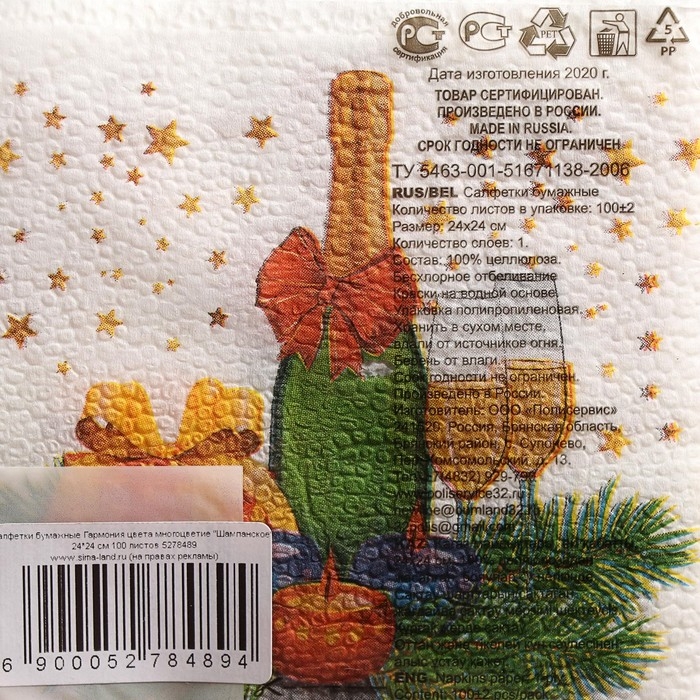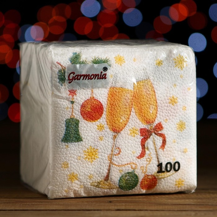Новый год. Салфетки бумажные Гармония цвета многоцветие "Шампанское", 24*24 см 100 листов