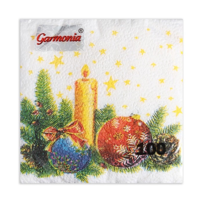Новый год. Салфетки бумажные Гармония цвета многоцветие "Свеча", 24*24 см 100 листов