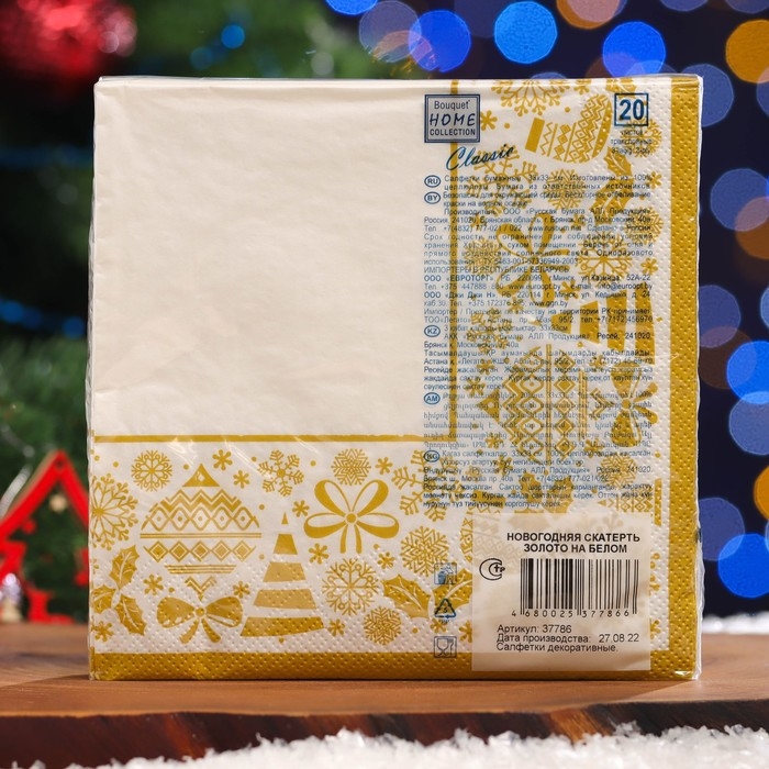 Новый год. Салфетки бумажные Home Classic "Новогодняя скатерть, Золото на белом",3 слоя, 20 листов