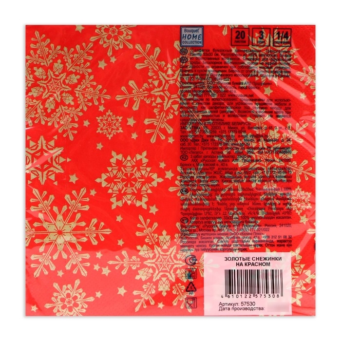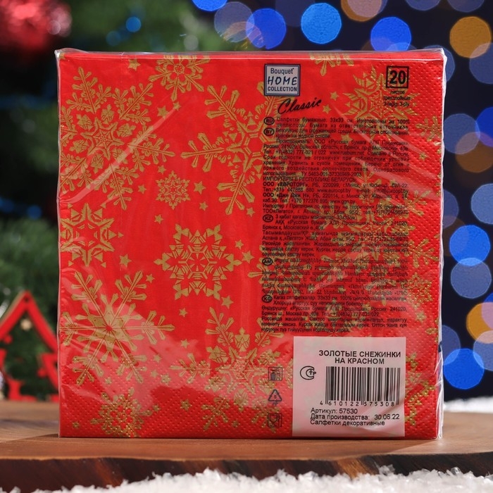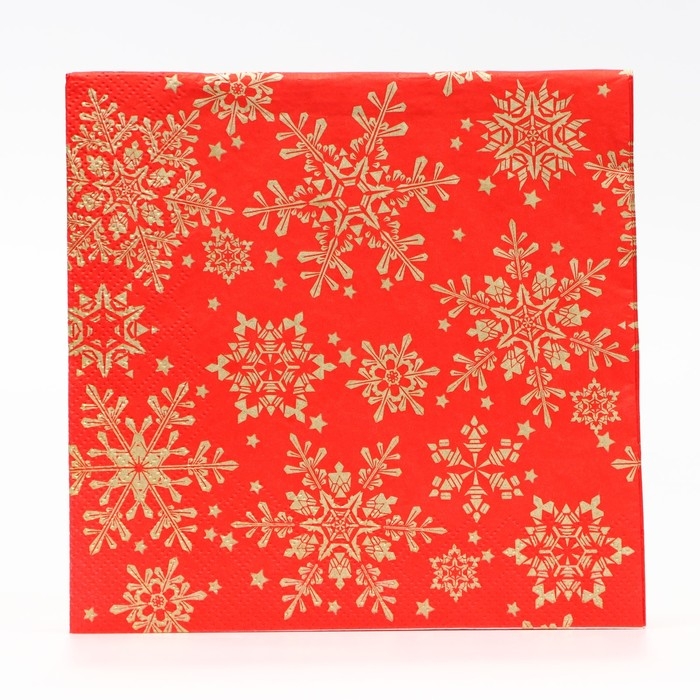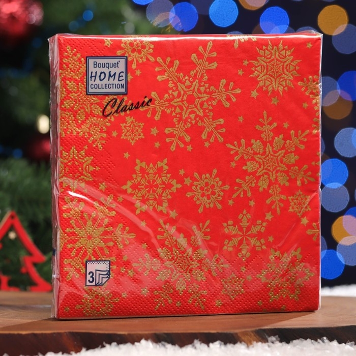 Новый год. Салфетки бумажные Home Classic "Золотые снежинки на красном", 3 слоя,33x33, 20 листов
