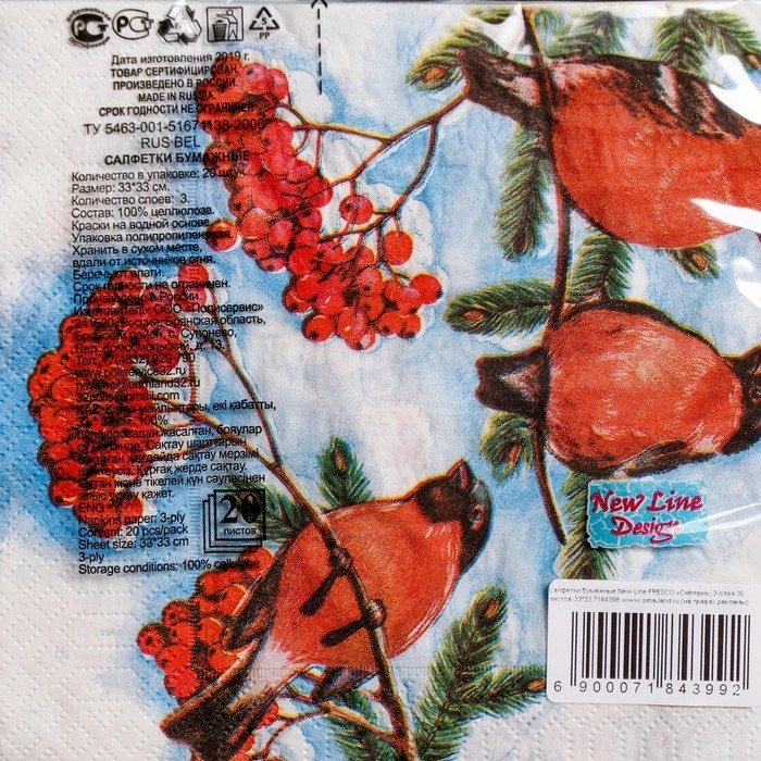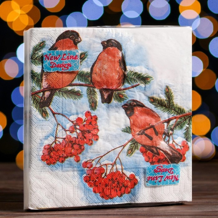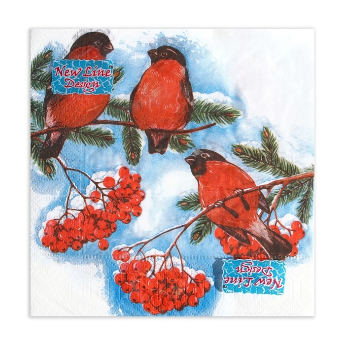 Новый год. Салфетки бумажные New Line Design «Снегири», 33х33 см, 3 слоя