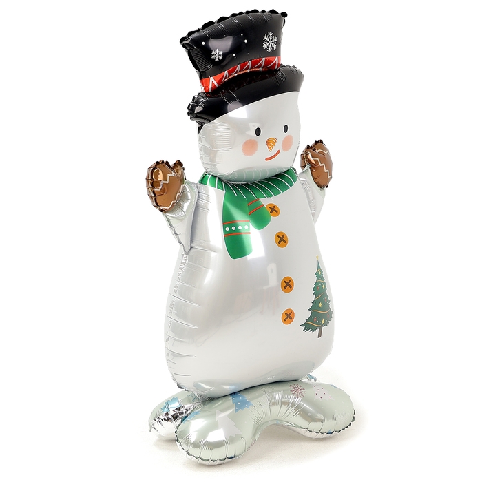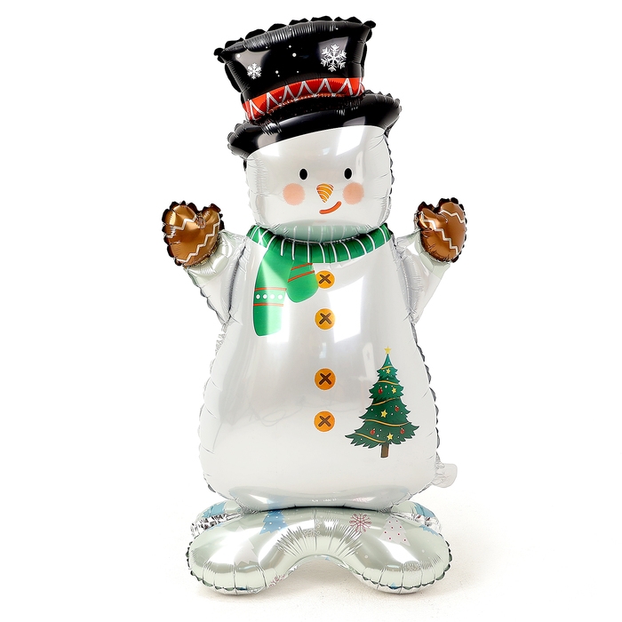 Новый год! Шар фольгированный 48" «Снеговик в шляпе», на подставке