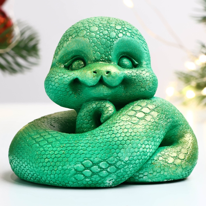 Новый год. Символ 2025. Фигура "Змея Хвостатик" светло-зеленая, 6х6см