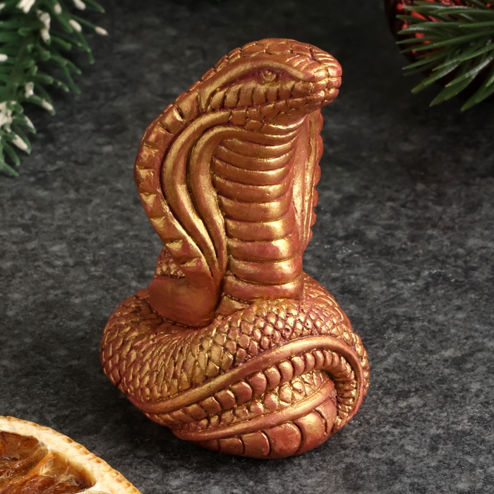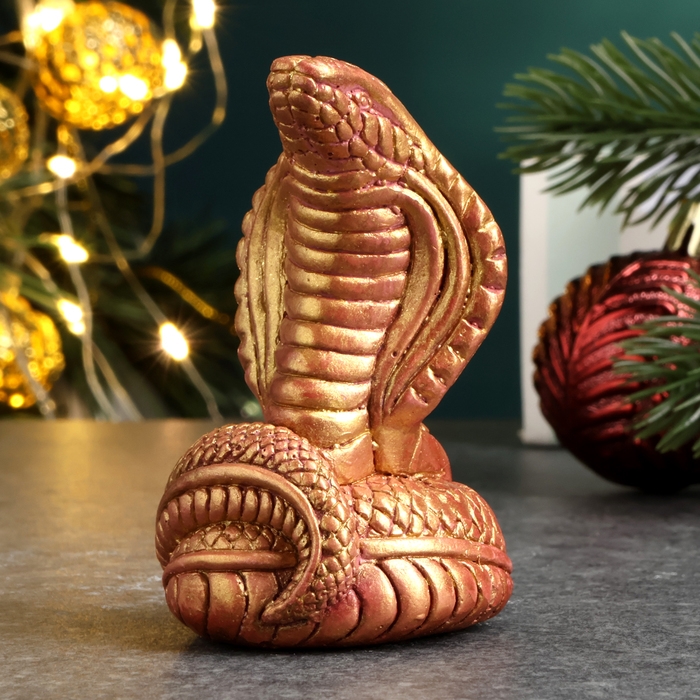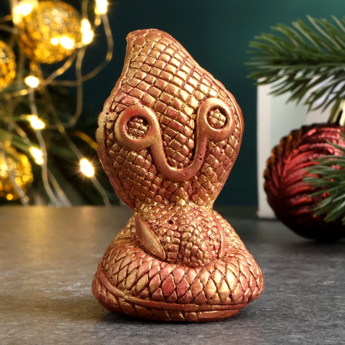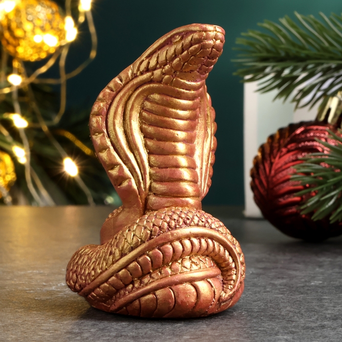 Новый год. Символ 2025. Фигура "Змея Кобра малая" бордовый с позолотой, 6х4х4см