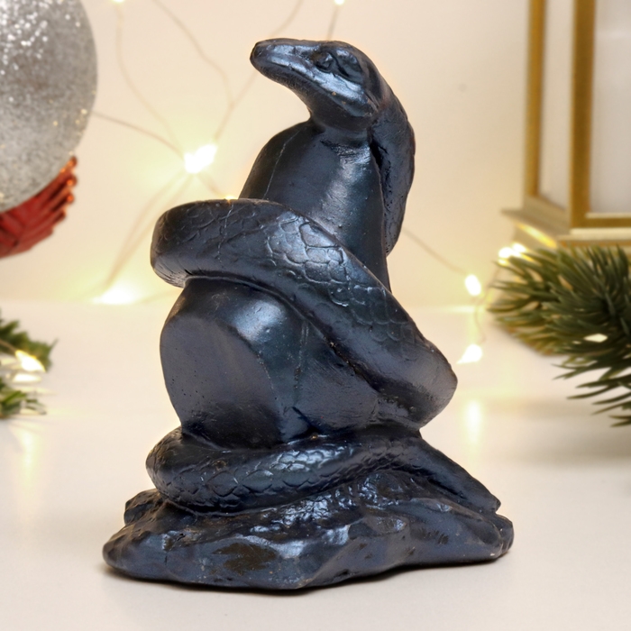Новый год. Символ 2025. Фигура "Змея на камне" синий лунный, 9х7х5см