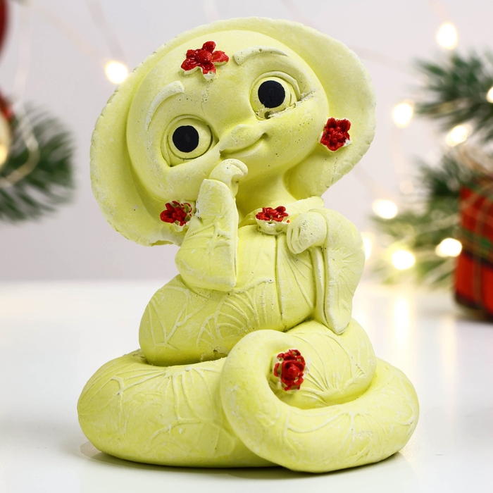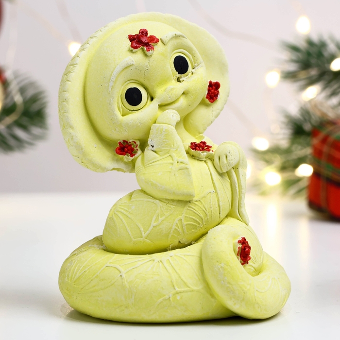 Новый год. Символ 2025. Фигура "Змея в панаме" лимонная, 8х6см