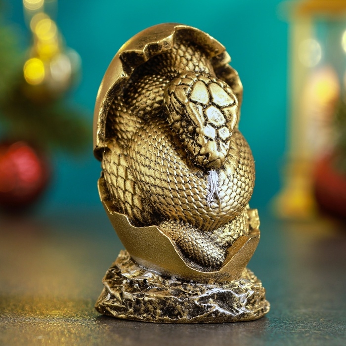 Новый год. Символ 2025. Фигура "Змея в яйце" 4х4х7см, бронза