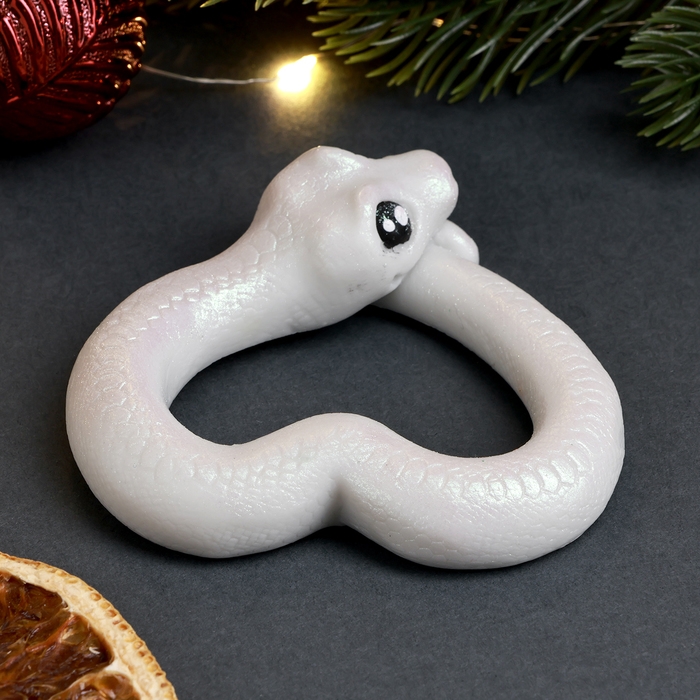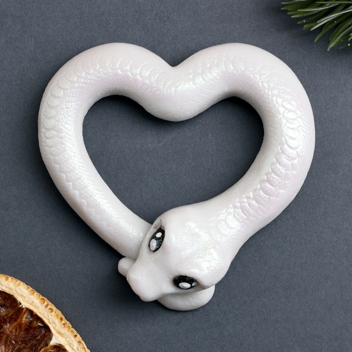 Новый год. Символ 2025. Фигурное мыло "Змея сердце" жемчужная