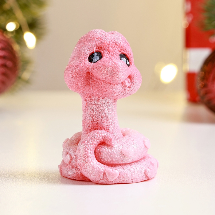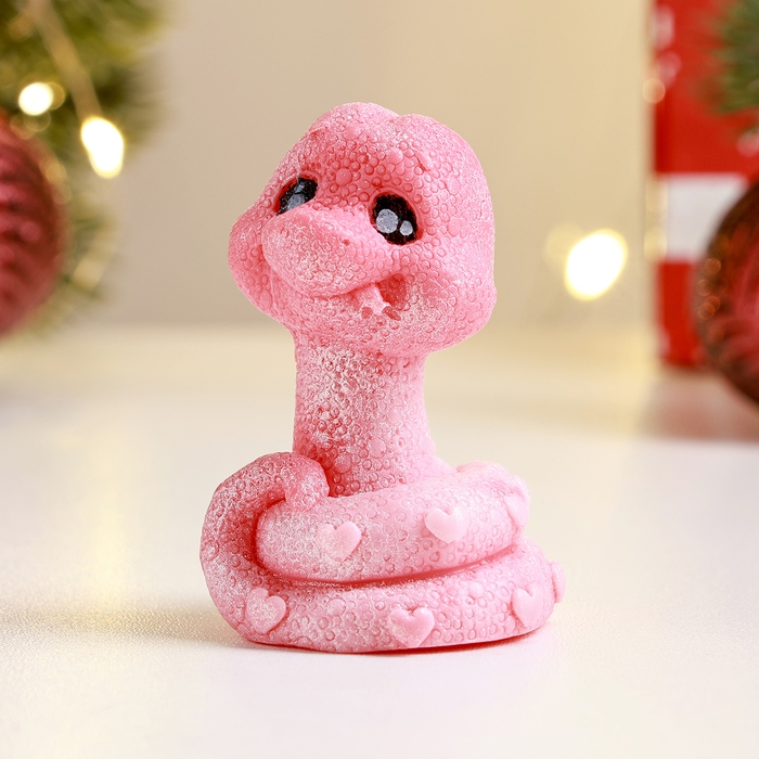 Новый год. Символ 2025. Фигурное мыло "Змея Улыбака" розовый с серебром