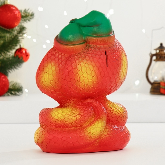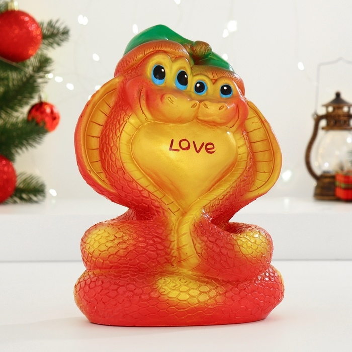 Новый год. Символ 2025. Копилка "Змеи с сердцем" красная, 24см