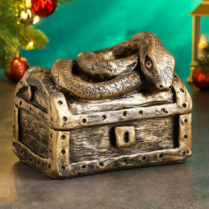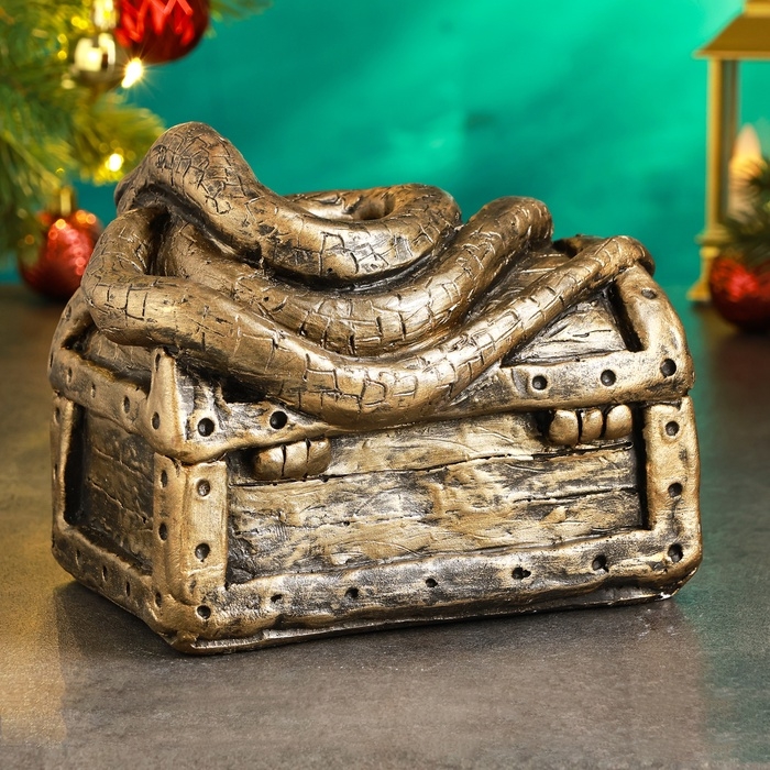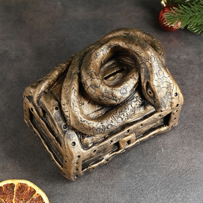 Новый год. Символ 2025. Копилка "Змея на сундуке" 16х11х14см, бронза