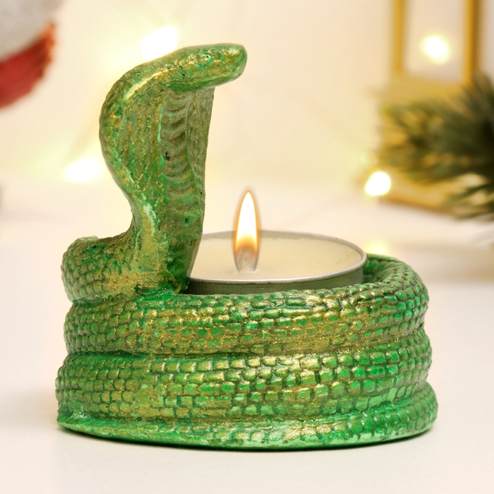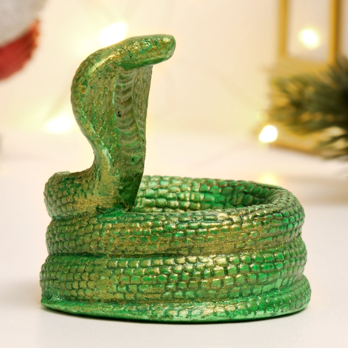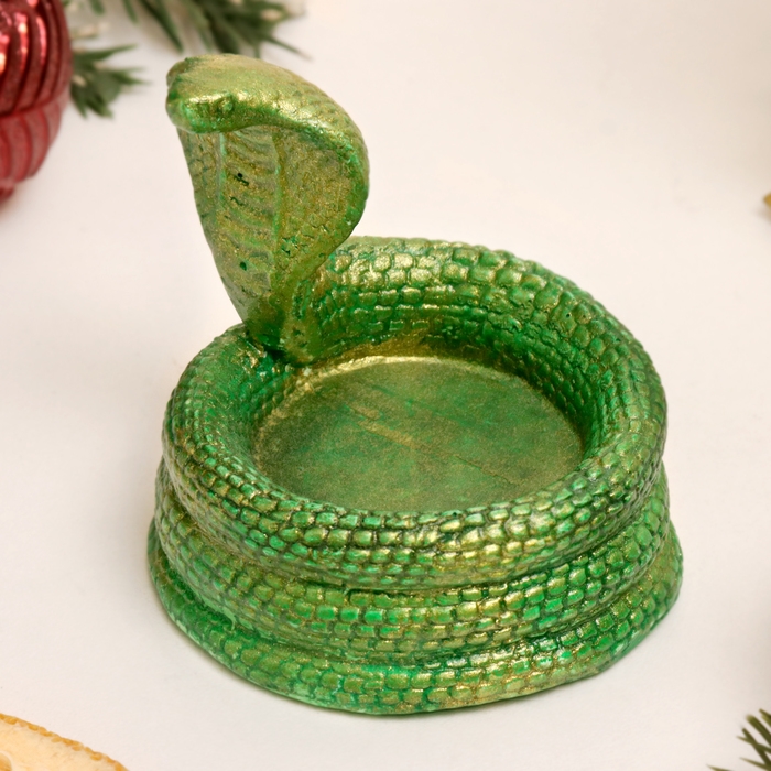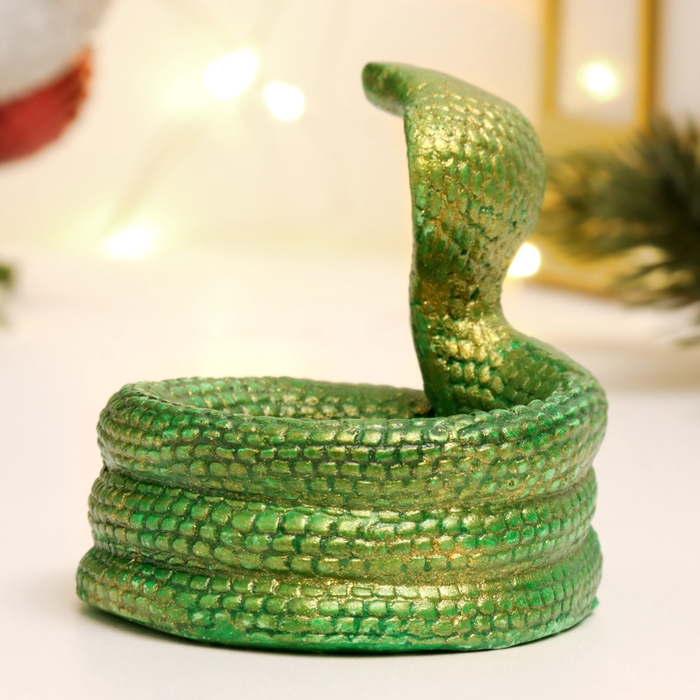 Новый год. Символ 2025. Подсвечник новогодний "Змея кобра" зеленый с позолотой, 8х5см