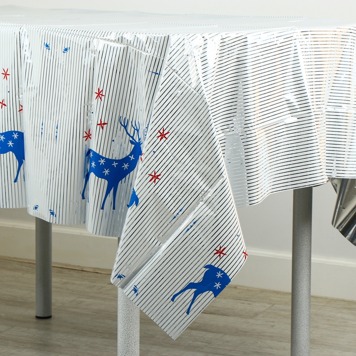 Эта новогодняя скатерть не только украшает стол, но и защищает его от пятен и повреждений. Легко моется и сушится, что делает её практичной и удобной в использовании. Скатерть «Олени» добавит вашему празднику уюта и станет незаменимым атрибутом новогоднего торжества.