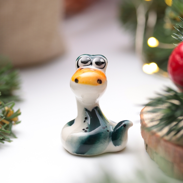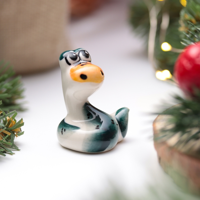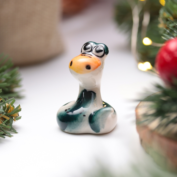Новый год. Сувенир символ года 2025 "Змея Кнопка", гжель, цвет, 4 см