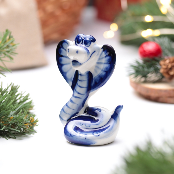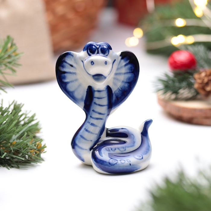 Новый год. Сувенир символ года 2025 "Змея Василиса", гжель, 8,5 см