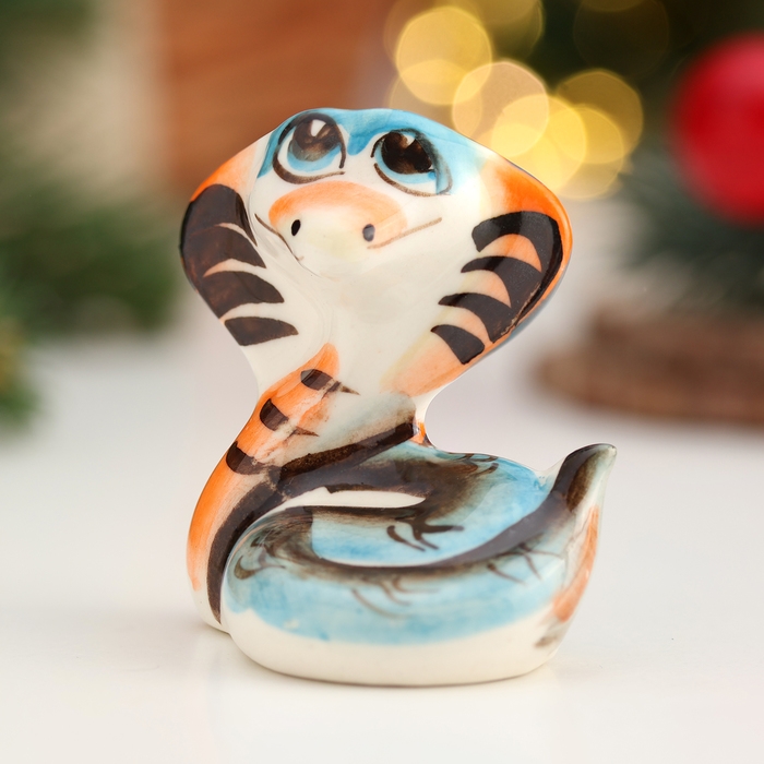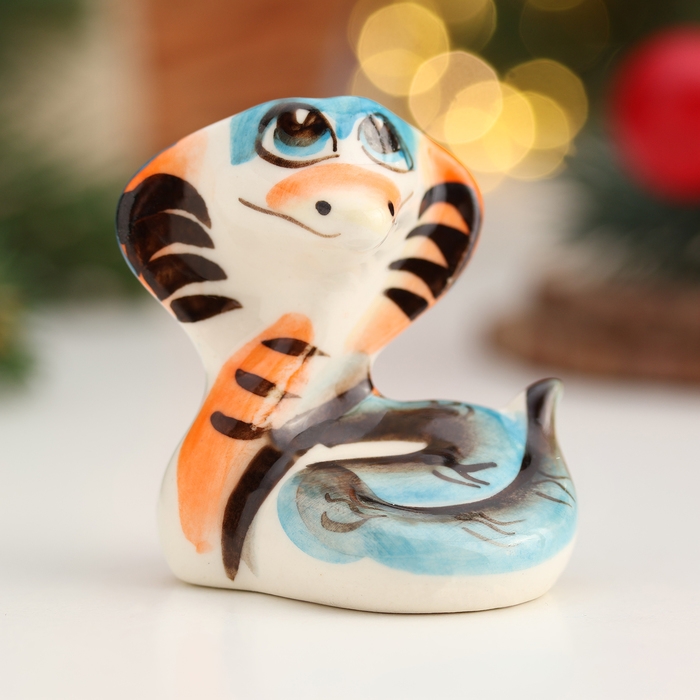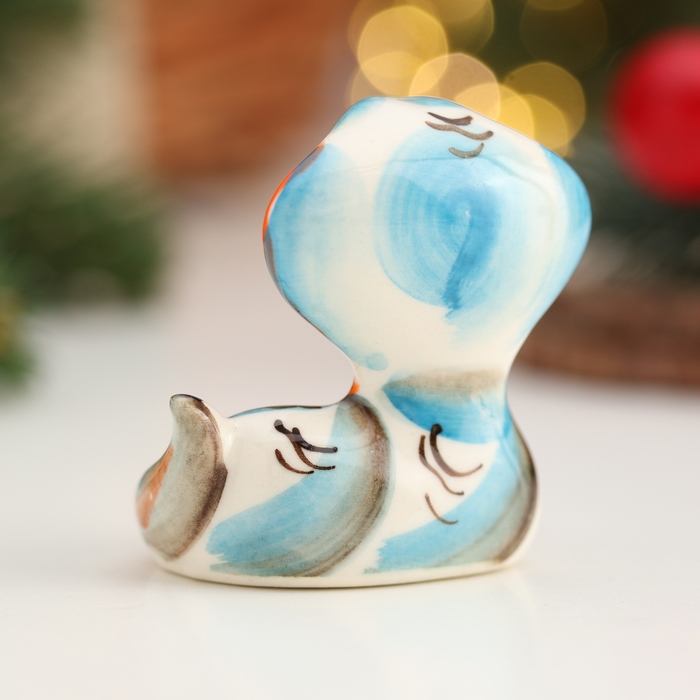 Новый год. Сувенир символ года "Змея Ляля", гжель, цвет, 5,5 см