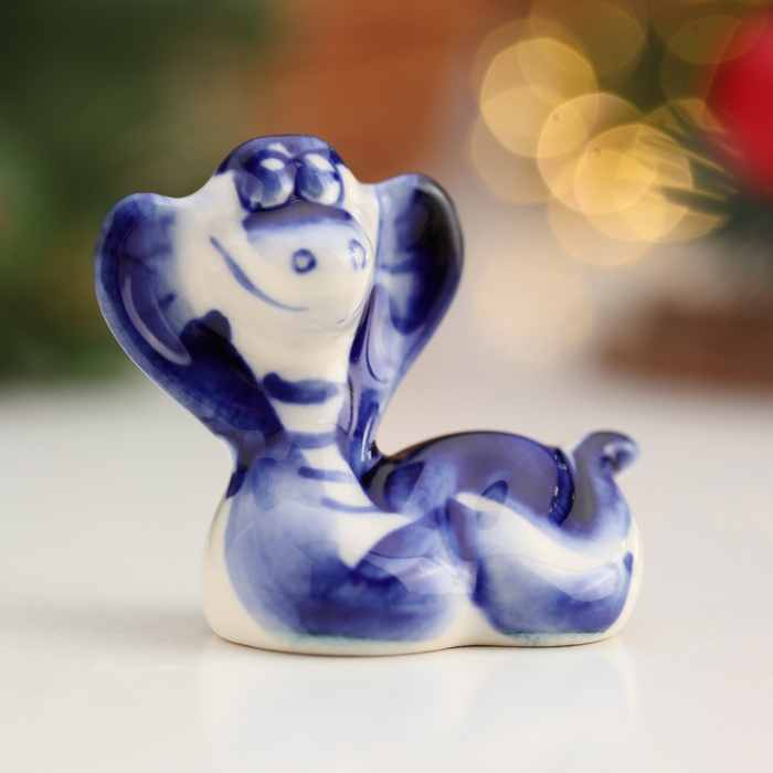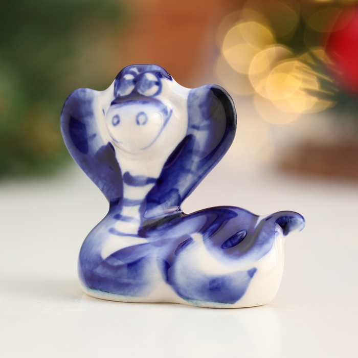 Новый год. Сувенир символ года "Змея Маруся", гжель, 4,5 см