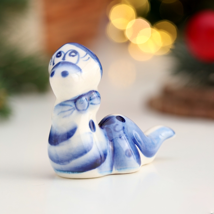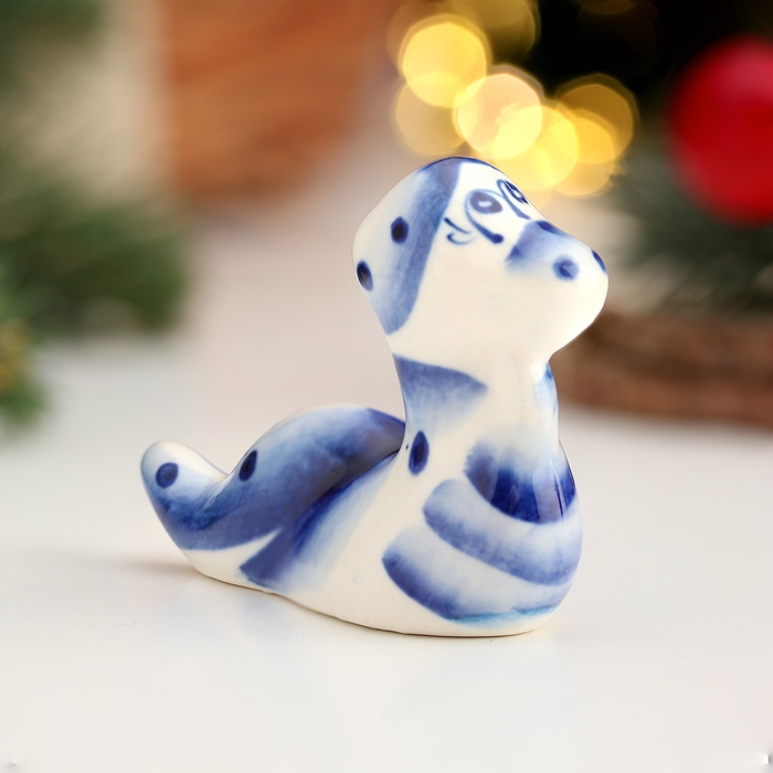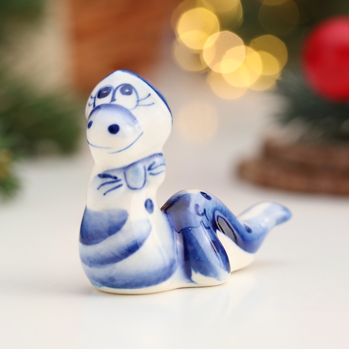 Новый год. Сувенир символ года "Змея Мотя", гжель, 5 см