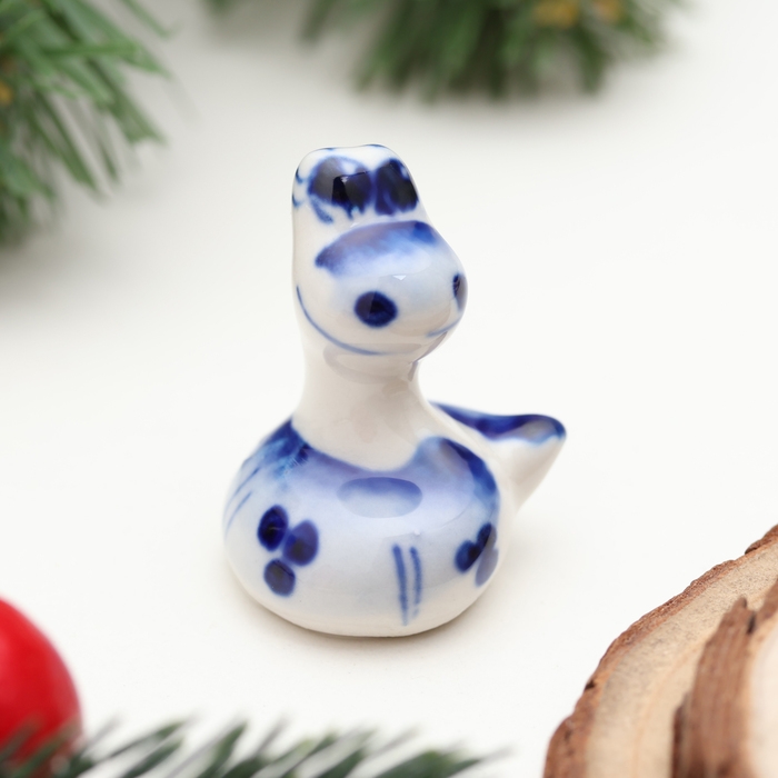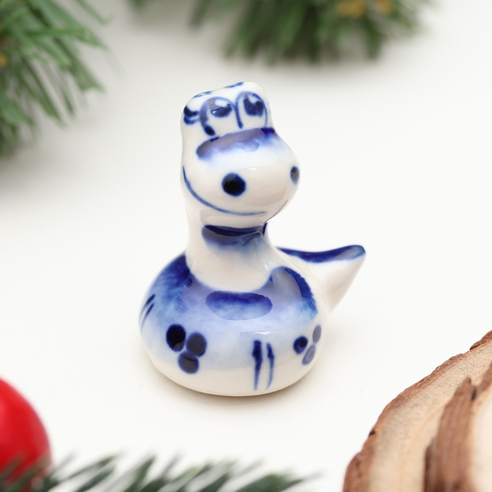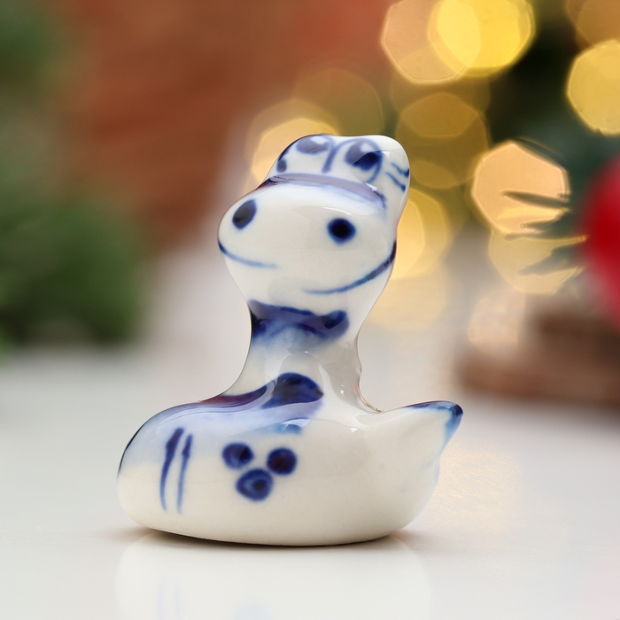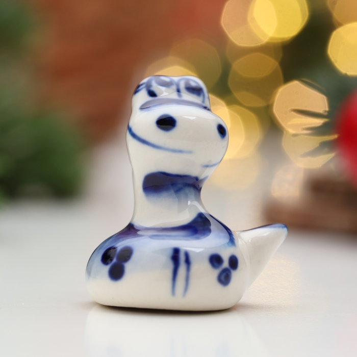 Новый год. Сувенир символ года "Змея Пупс", гжель, 3,5 см