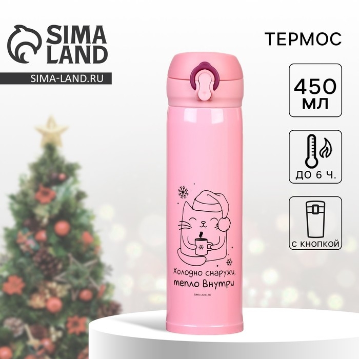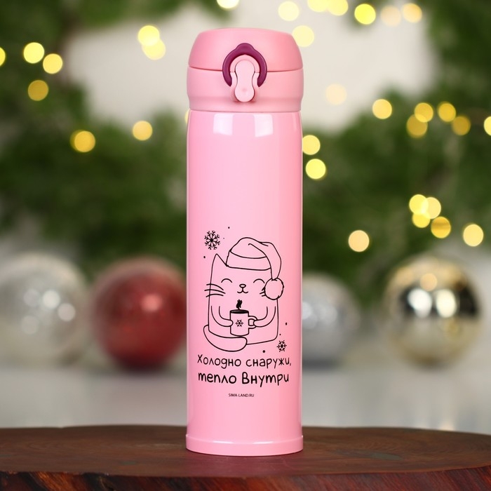 Новый год. Термос «Тепло внутри» цвет розовый, 450 мл