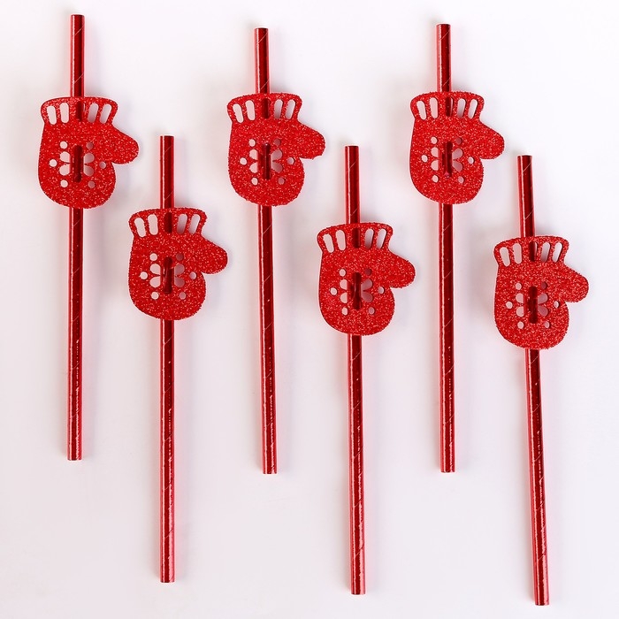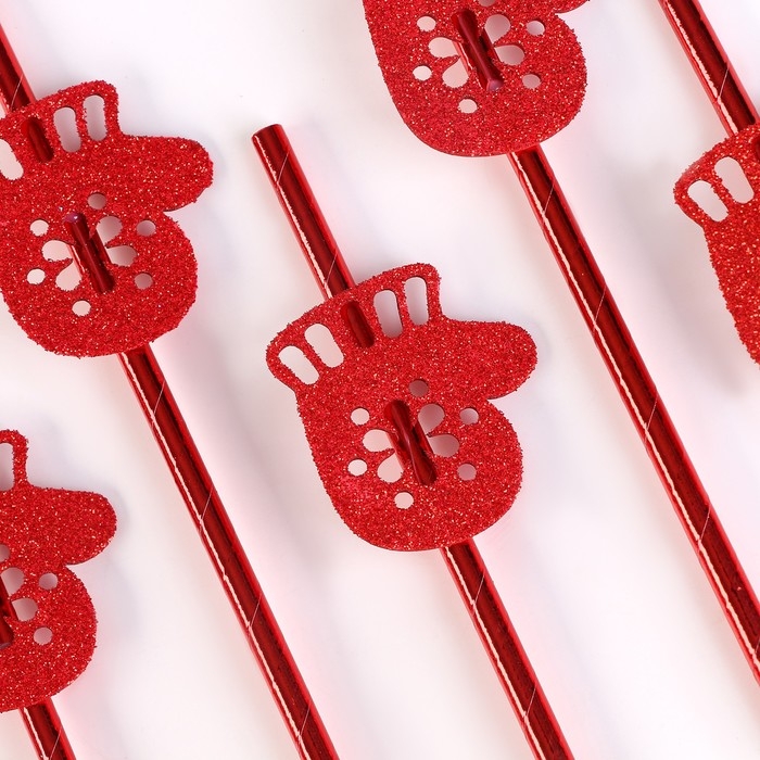 Новый год! Трубочка для коктейля «Варежки», в наборе 6 шт., красные