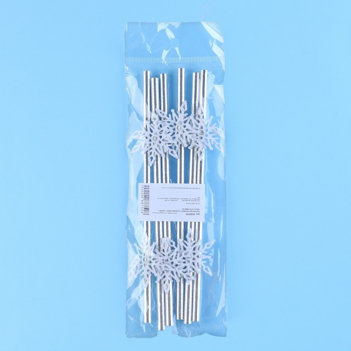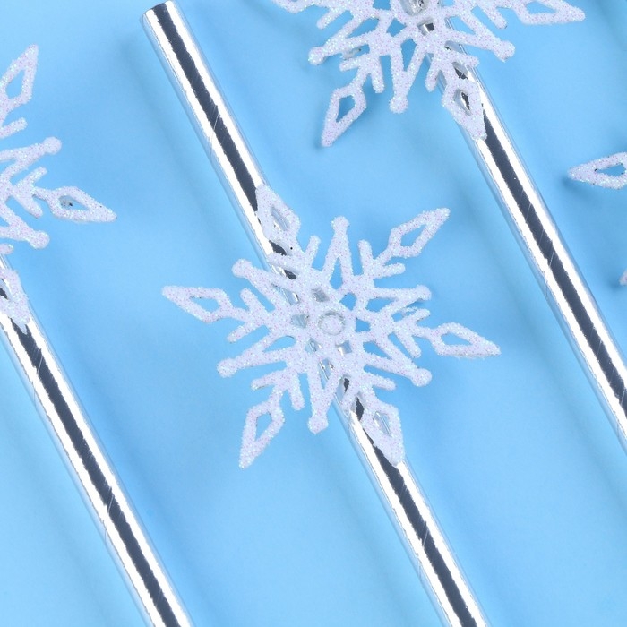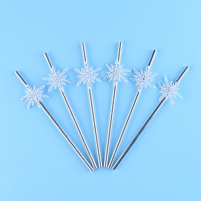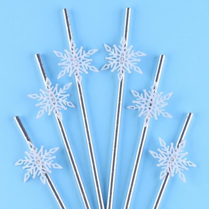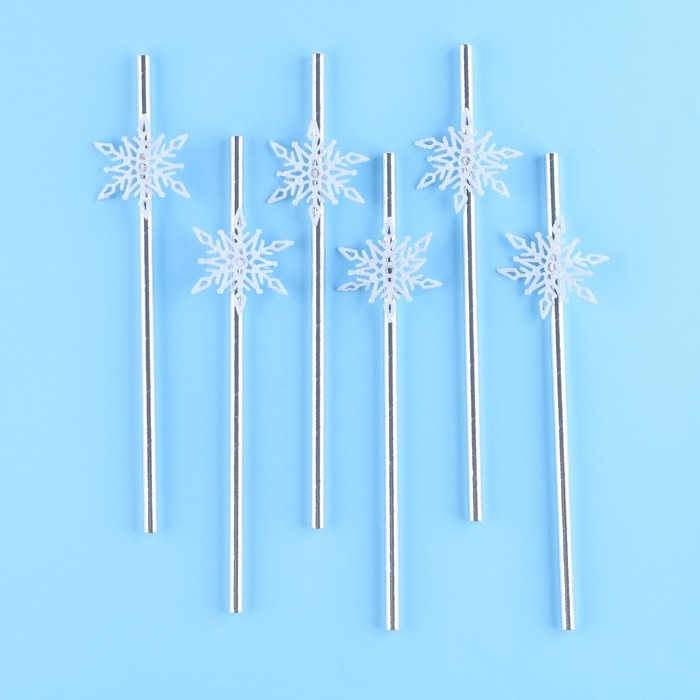 Новый год! Трубочки для коктейля «Снежинки», уголки, в наборе 6 штук, серебро