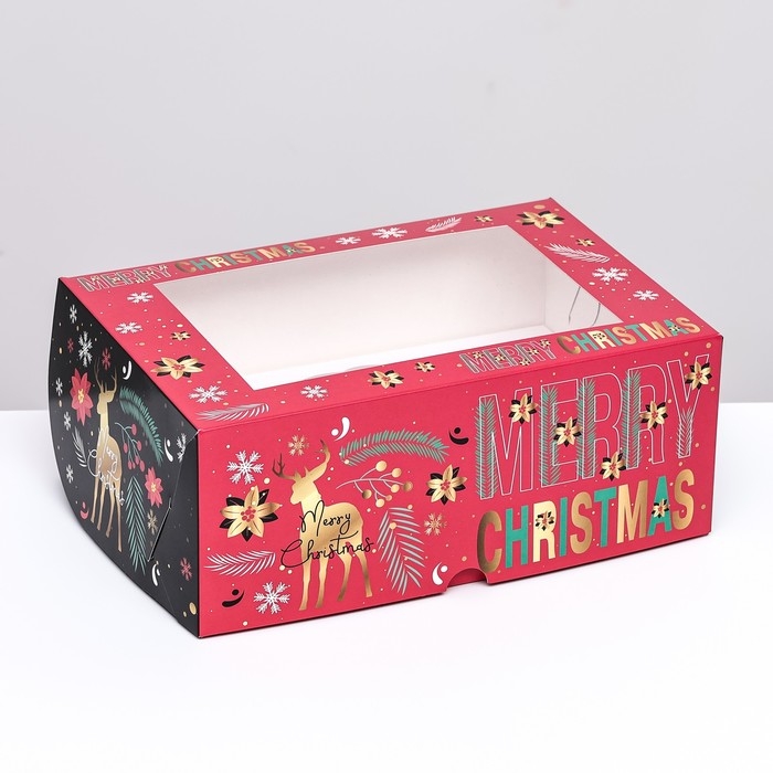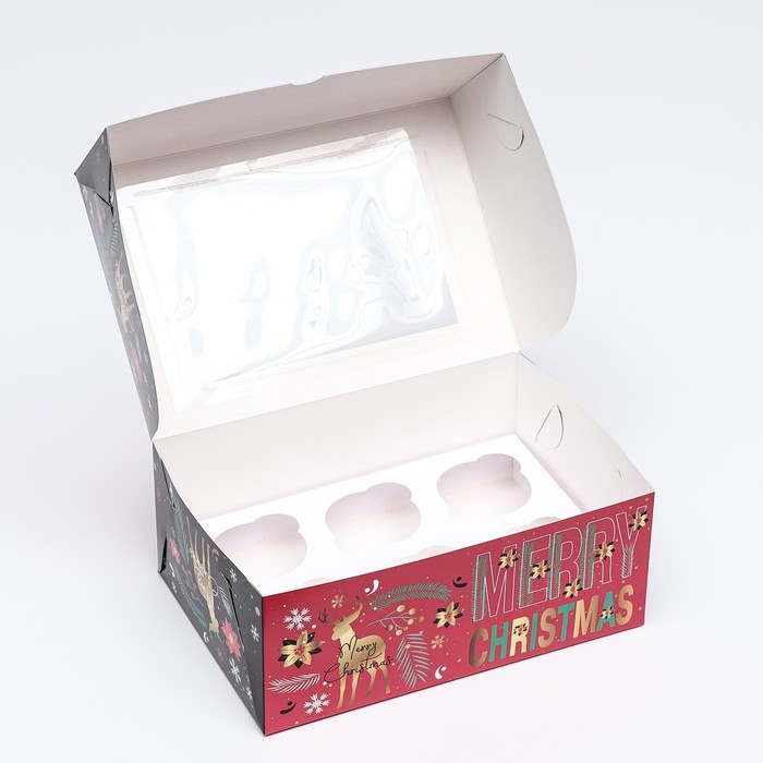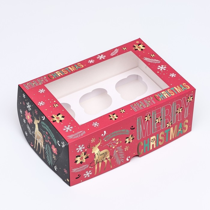 Новый год. Упаковка на 6 капкейков с окном "Merry Christmas", 25 х 17 х 10 см