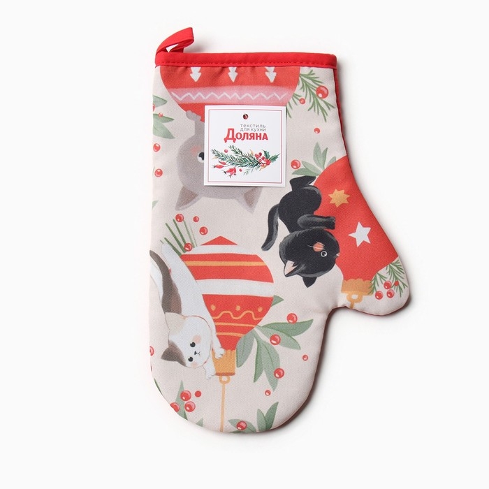 Новый год.Варежка-прихватка Доляна "Игривого праздника" 20х28 см, 35% хл, 65% пэ, ватин 250 г/м2