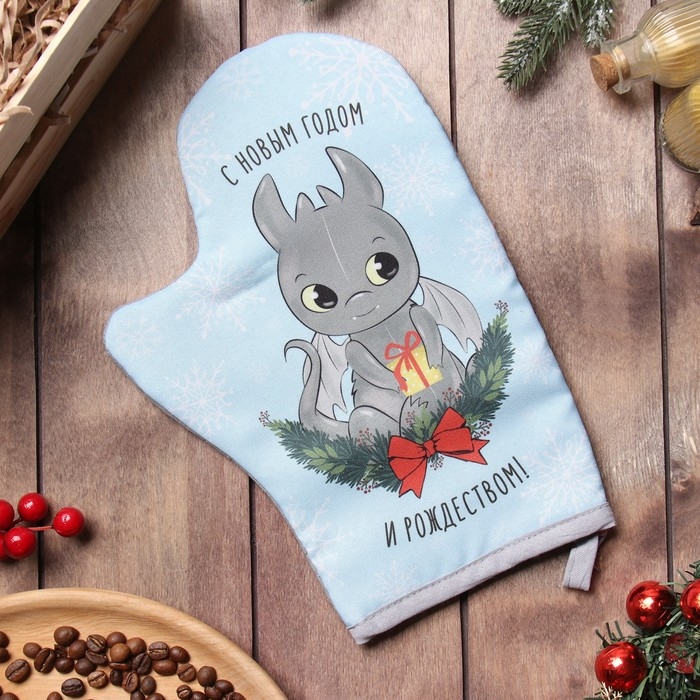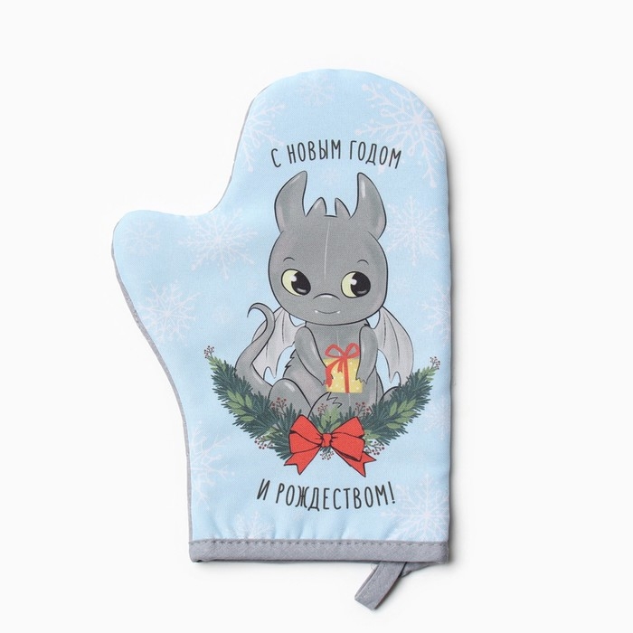 Новый год.Варежка-прихватка Доляна "Радостный дракон" 20х28 см, 35% хл, 65% пэ, ватин 250 г/м2