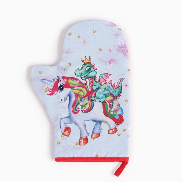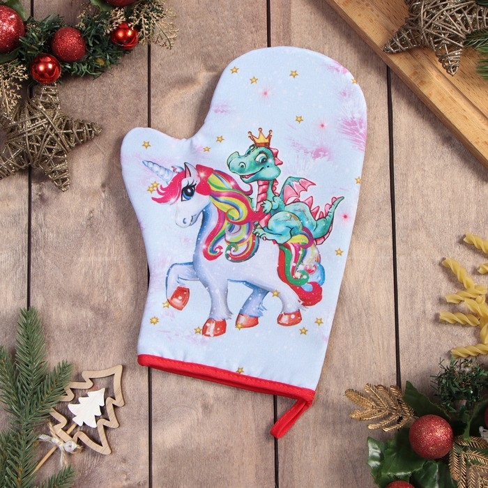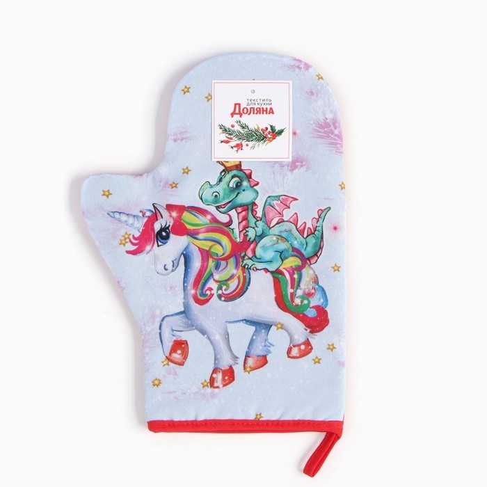 Новый год.Варежка-прихватка "Дракон и единорожка" 20х28 см, 35% хл, 65% пэ, ватин 250 г/м2