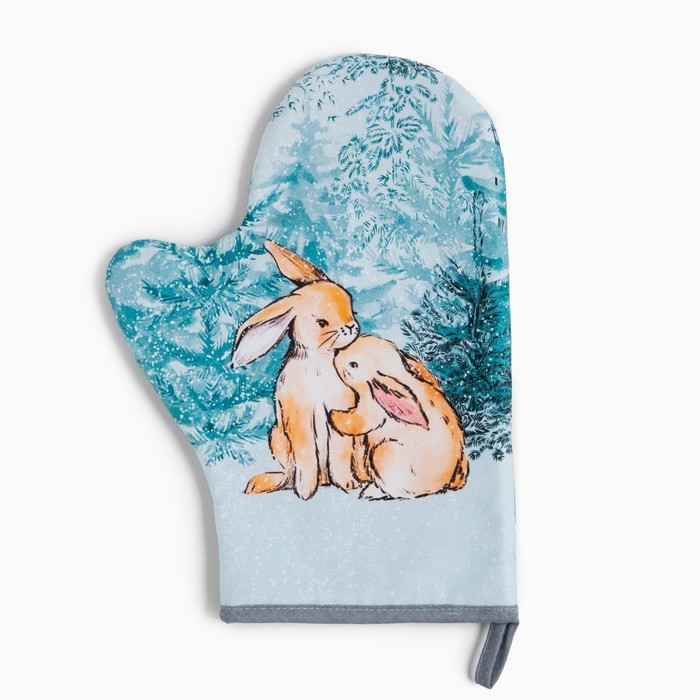 Новый год.Варежка-прихватка Доляна Forest dwellers 20х27 см, 100% хл, ватин 250г/м2