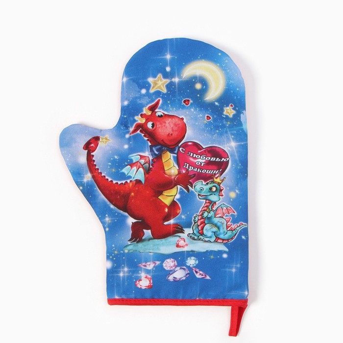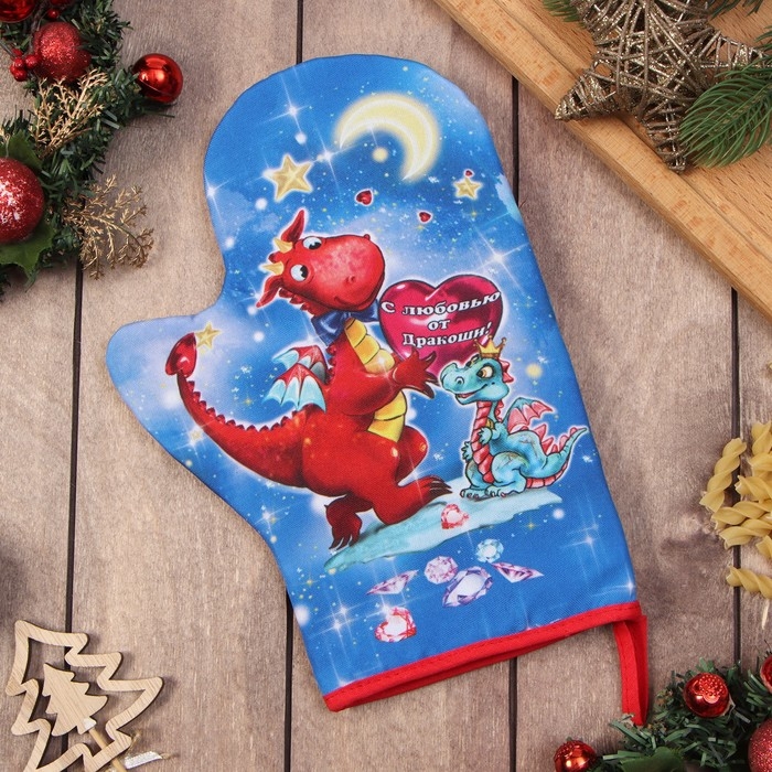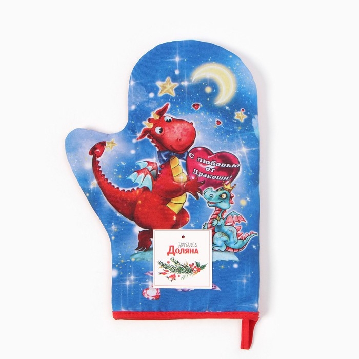 Новый год.Варежка-прихватка "С любовью от Дракоши" 20х28 см, 35% хл, 65% пэ, ватин 250 г/м2